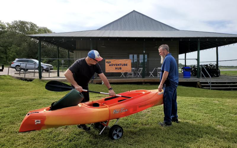 Enough land adventure? Hit the water in our kayak rentals! We currently offer single and tandem kayaks for rental. Explore Lake Buchanan directly from the Adventure Hub. Dive into adventure on the sparkling waters of the lake! At Canyon of the Eagles, your aquatic playground awaits. Carve through the crystal-clear water on a kayak rental, exploring hidden coves and soaking up the scenic beauty. For the angling enthusiast, cast a line from our private fishing pier and see if you can reel in a trophy largemouth bass. Whether you're a seasoned paddler or a first-time fisherman, Canyon of the Eagles offers the perfect place to make a splash and create memories that will last a lifetime.